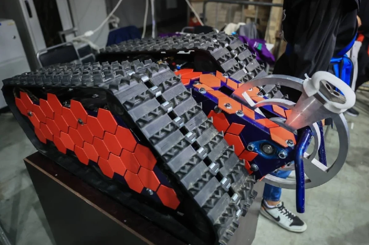 «Гусеничная система — это не просто деталь конструкции, а основа всего робота. Она помогает двигаться ровно и уверенно, независимо от состояния поверхности. Мы сравниваем „RedHorn 3“ с бульдозером: он движется вперёд спокойно, но с силой, не теряя устойчивости и контроля», — рассказал капитан команды Istok.Robotics.