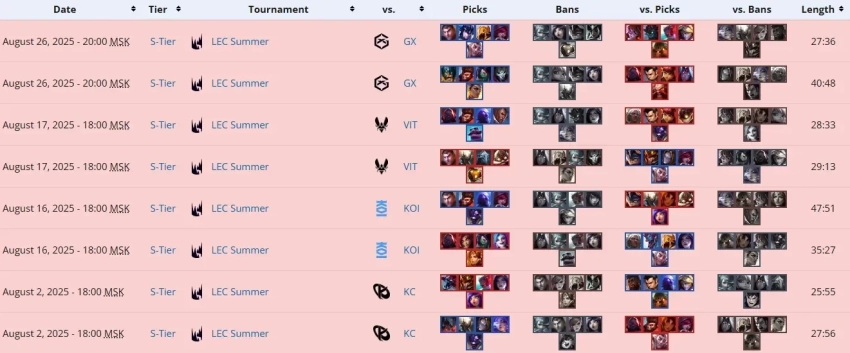 На момент публикации Natus Vincere завершила выступление в основном этапе LEC Summer 2025; следующая возможность исправить результаты — зимний сплит 2026 года.